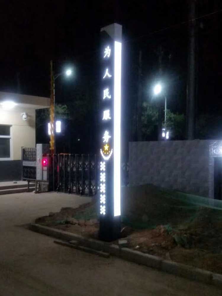 該項目是的燈具外觀造型,統(tǒng)一由我公司設(shè)計師設(shè)計完成,結(jié)合公安局特色,設(shè)計出適合的燈具造型,在燈具上設(shè)計有“為人民服務”字樣,還有加了5個五角星。外部采用激光切割技術(shù),將整體的造型雕刻出來,內(nèi)部安裝亞克力白板嵌套而成。