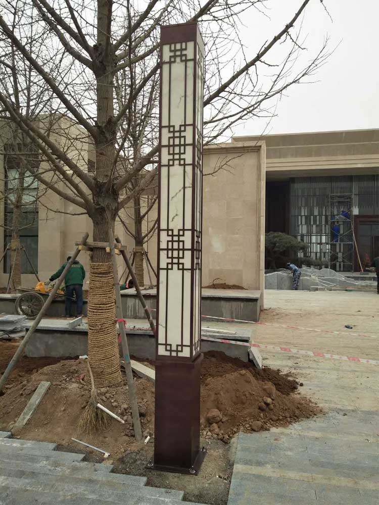 簡介—— 寶雞花旗集團庭院方燈,該項目主要采用的是我公司自己設計生產(chǎn)的庭院燈、草坪燈。顏色外觀采用激光切割板材與亞克力板組成,造型簡單大方,顏色深淺搭配柔和,夜間亮燈,散發(fā)出暖色燈光。