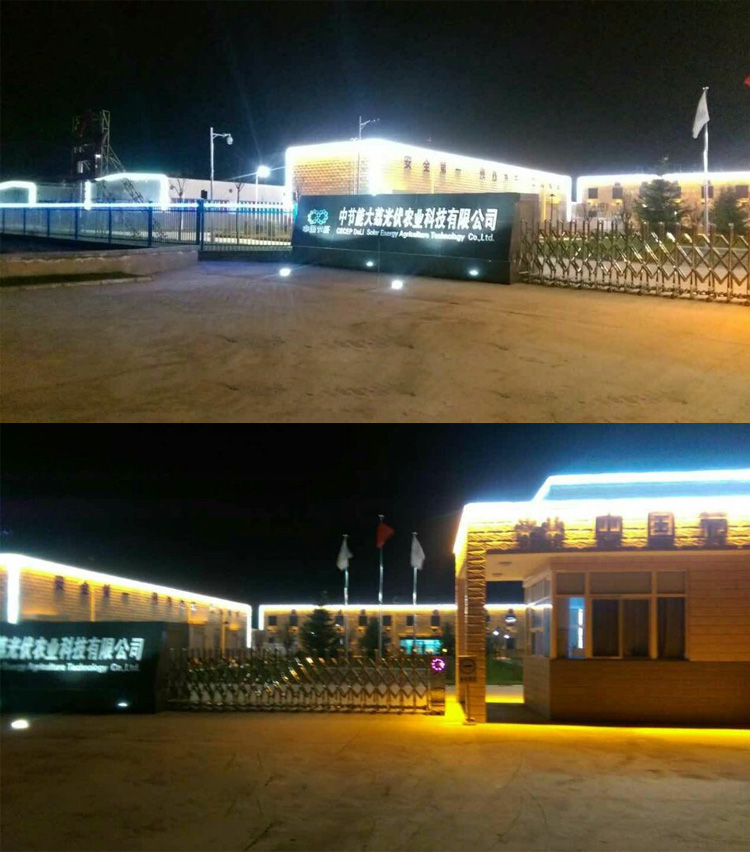 簡(jiǎn)介—— 中節(jié)能大荔光伏農(nóng)業(yè)科技有限公司廠區(qū)亮化項(xiàng)目,是我們陜西蘭光照明2015年承接的亮化工程。公司設(shè)計(jì)師根據(jù)廠家要求簡(jiǎn)單實(shí)用的特點(diǎn),整個(gè)廠區(qū)的設(shè)計(jì)全部采用線條燈和輪廓燈,將整個(gè)廠區(qū)的廠房、大門、廠區(qū)道路、辦公樓以輪廓勾勒的形式展現(xiàn)出來(lái),照亮整個(gè)廠區(qū),達(dá)到客戶廠區(qū)樓宇亮化需求。