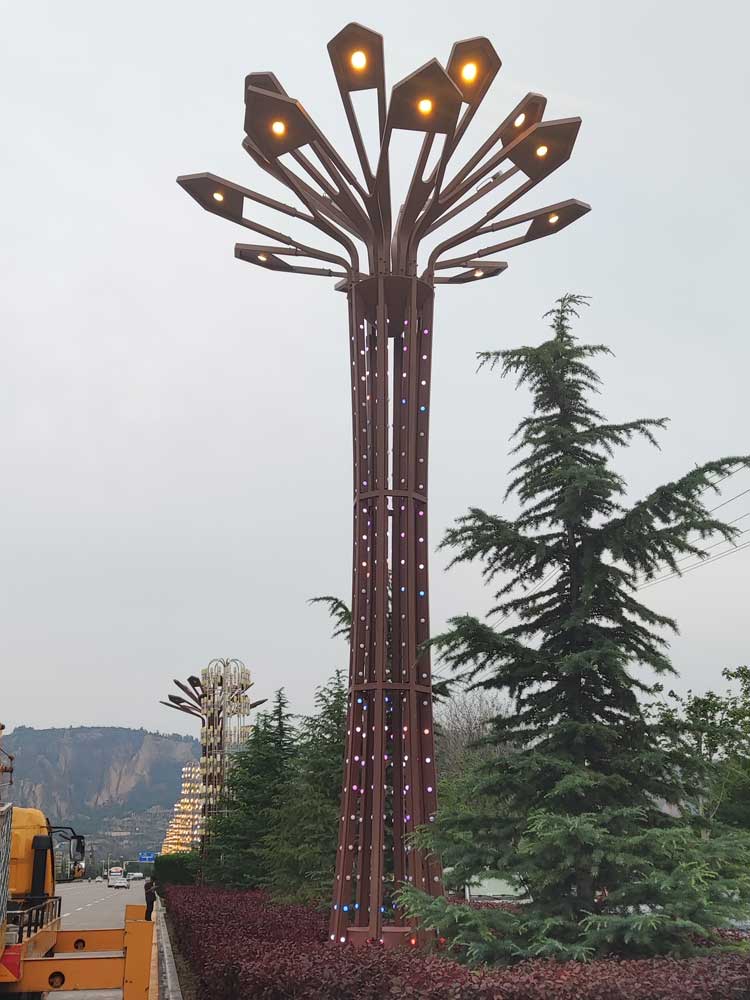 甘肅平?jīng)?米景觀燈項目,安裝位于崆峒山下的市政道路倆側(cè),主光源采用16個LED模組光源組成,配合燈體400的RGB點光源構(gòu)成,系統(tǒng)采用512控制,夜晚整體趁現(xiàn)炫彩效果,亮化倆側(cè)道路。